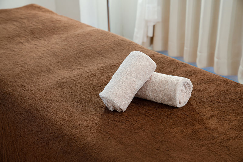 - 施術用ベッド (高さ調整可、フェイスホール付き)